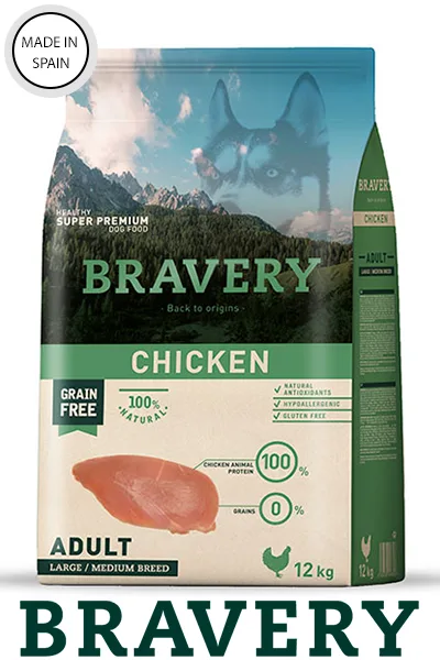 ברייברי מזון יבש לכלבים בוגרים על בסיס בשר עוף פורמולה ללא דגנים היפואלרגני 12 ק"ג